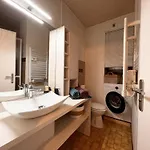 Dieses Apartment verfügt über ein Badezimmer mit einem Haartrockner und Handtüchern. Außerdem gibt es hier eine getrennte Toilette, eine Dusche und eine Waschmaschine.